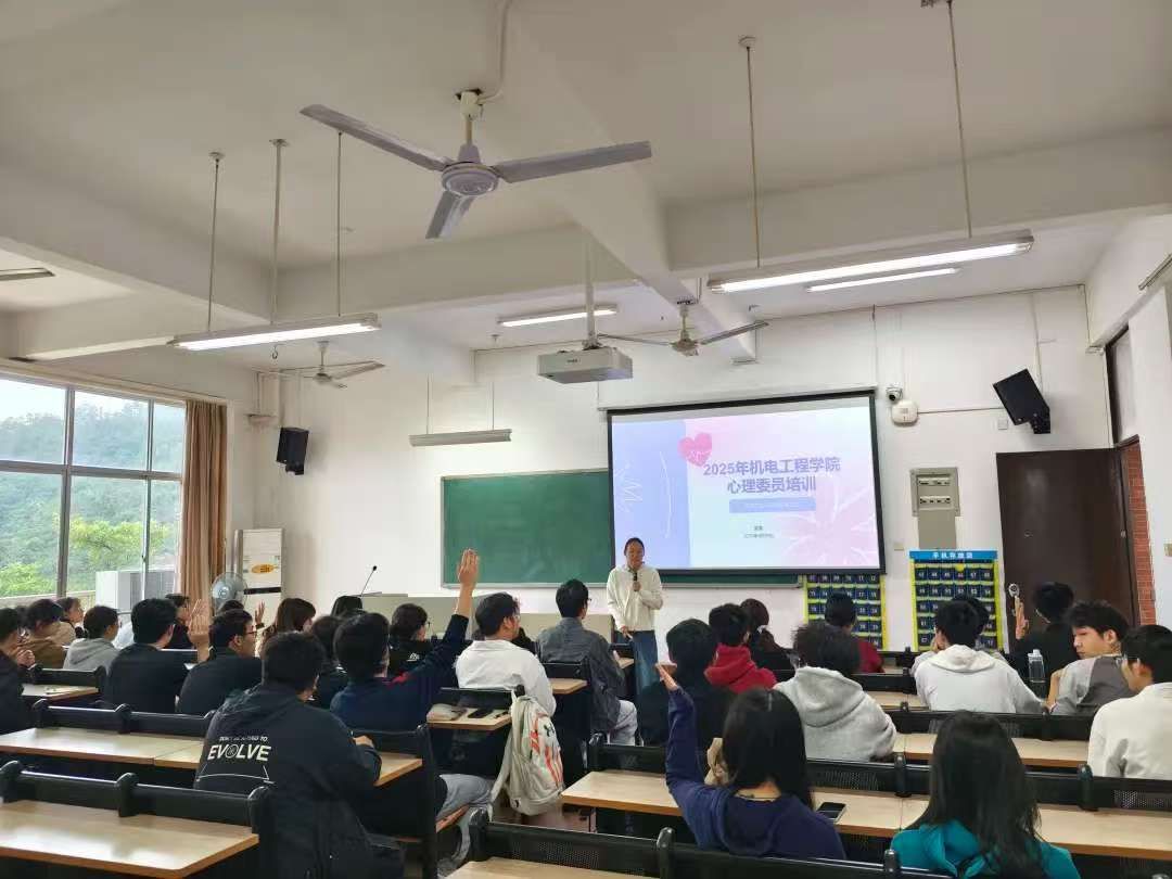【广东理工职业学院机电工程学院心语轩报道】为进一步加强心理健康教育工作,提升心理委员的专业素养与服务能力,充分发挥其在朋辈心理支持中的重要作用,2025年10月23日,机电工程学院心语轩二级心理辅导站组织开展2025级心理委员专题培训。本次培训由二级心理辅导站指导老师黄秦主讲,各班级心理委员、心语轩全员参与。