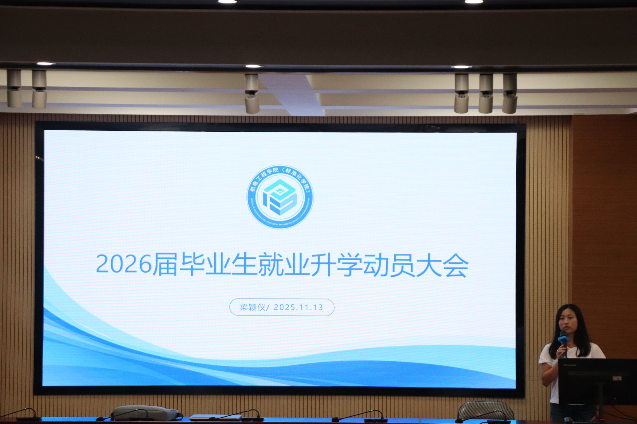 为应对复杂就业升学形势,精准指导助力学子逐梦前行,机电工程学院于11月13日召开2026届毕业生就业升学动员大会。毕业班辅导员梁颖仪主持会议。
