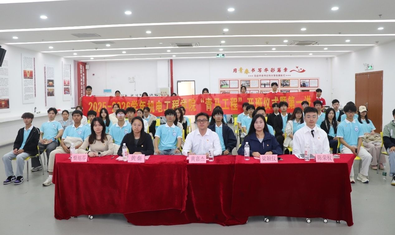 12月18日,机电工程学院(标准化学院)2025-2026学年“青马工程”开班仪式暨第一讲在学生活动中心301顺利举行。仪式特邀学院党总支书记黄嘉杰领学中国共产党第二十届中央委员会第四次全体会议精神,全体辅导员及青马班学员共同参与。