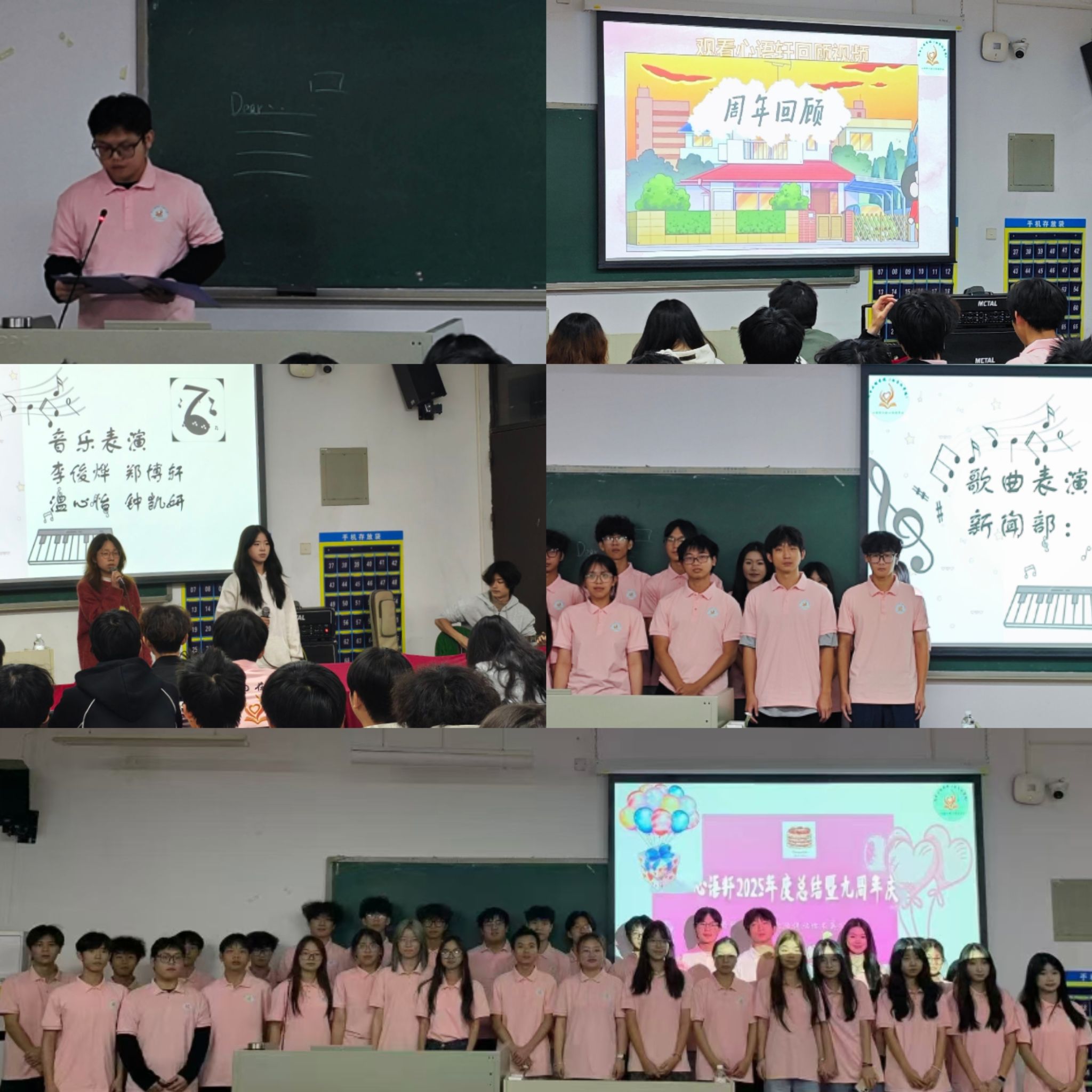 活动伊始,一段温馨的回顾短片缓缓播放,从青涩的探索尝试到成熟的服务体系,每一帧画面都记录着心语轩和大家的蜕变与成长。 随后,学生副站长张煜上台发言。他首先代表心语轩全体成员,向长期以来关心支持心语轩发展的老师、同学以及每一位默默付出的成员表示衷心的感谢。在发言中,他回顾了过去一年心语轩开展的各项工作,详细梳理了工作中的成果与收获,也分析了存在的不足与改进方向。最后,他号召全体成员在未来继续坚守初心,以更专业的态度、更饱满的热情投入到工作中,让心语轩的温暖继续传递下去。精彩的发言过后,庆典迎来了充满温情与活力的表演环节。首先登场的是声乐部的成员们,他们带来了精心准备的歌曲表演。悠扬的旋律缓缓流淌,每一个音符都传递着温暖与力量。 紧接着,策划团队与新闻团队的成员们携手登台,带来了精心准备的合唱表演,用真挚的歌声传递心声,既展现了幕后工作者们严谨细致之外的温情一面,也彰显了团队之间同心同行的协作精神。活动最后,大家合唱站歌《爱因为在心中》,这份温暖与力量也将伴随每一位心语轩人继续前行。