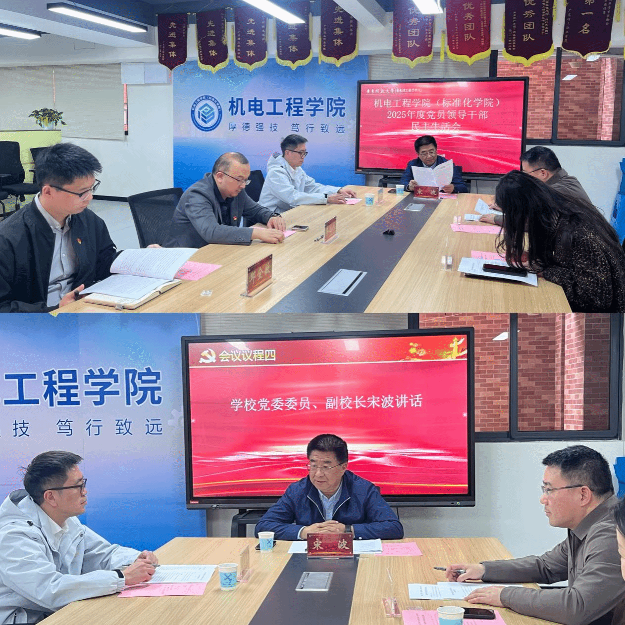 2026年1月15日,机电工程学院(标准化学院)在中山校区召开2025年度党员领导干部民主生活会。学校党委委员、副校长宋波到会指导。学院领导班子全体成员、党总支委员会委员及学生工作办公室主任郭丹丹参加会议。