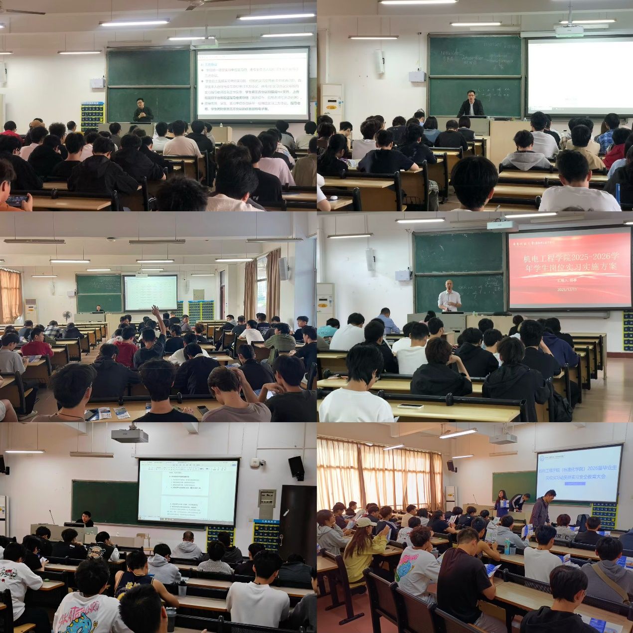 12月11日,机电工程学院(标准化学院)召开2026届毕业生岗位实习动员暨安全教育大会,会议聚焦实习动员与安全教育双核心,为毕业生实习工作奠定坚实基础。学院各专业负责人、岗位实习指导老师及毕业班辅导员参会。