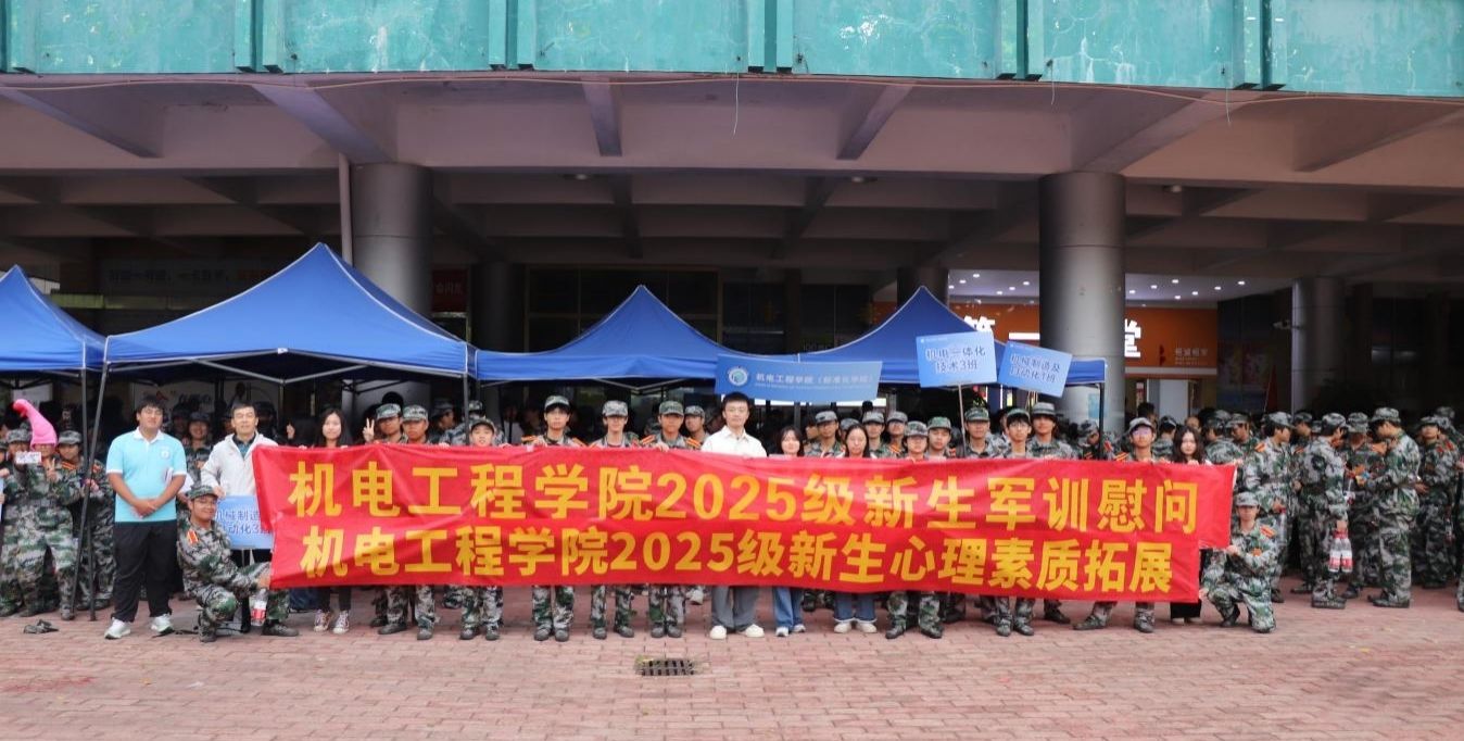 【广东理工 机电工程学院团委报道】为传递学院关怀与温暖,激励新生以饱满热情投入军训生活,11月18日,机电工程学院在立德广场开展2025级新生军训慰问活动。机电工程学院党总支书记黄嘉杰、副院长李达人带领新生班主任及全体辅导员参加本次活动。